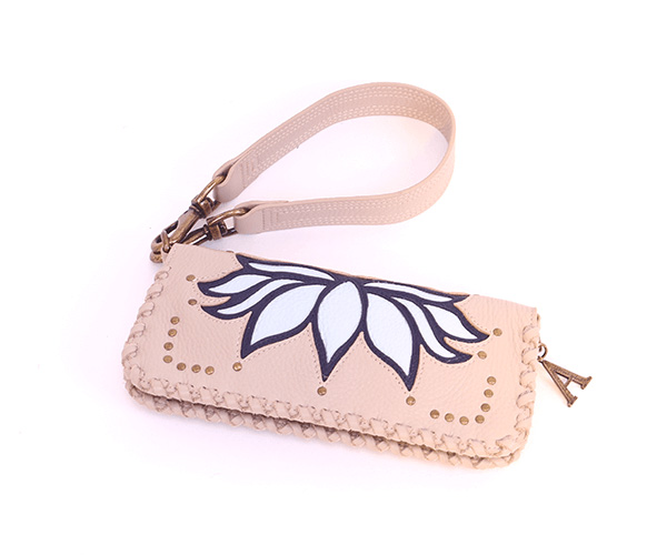 De Lotus Nude Putch met als basiskleur nude en het lotusdesign in babyblue en navy.